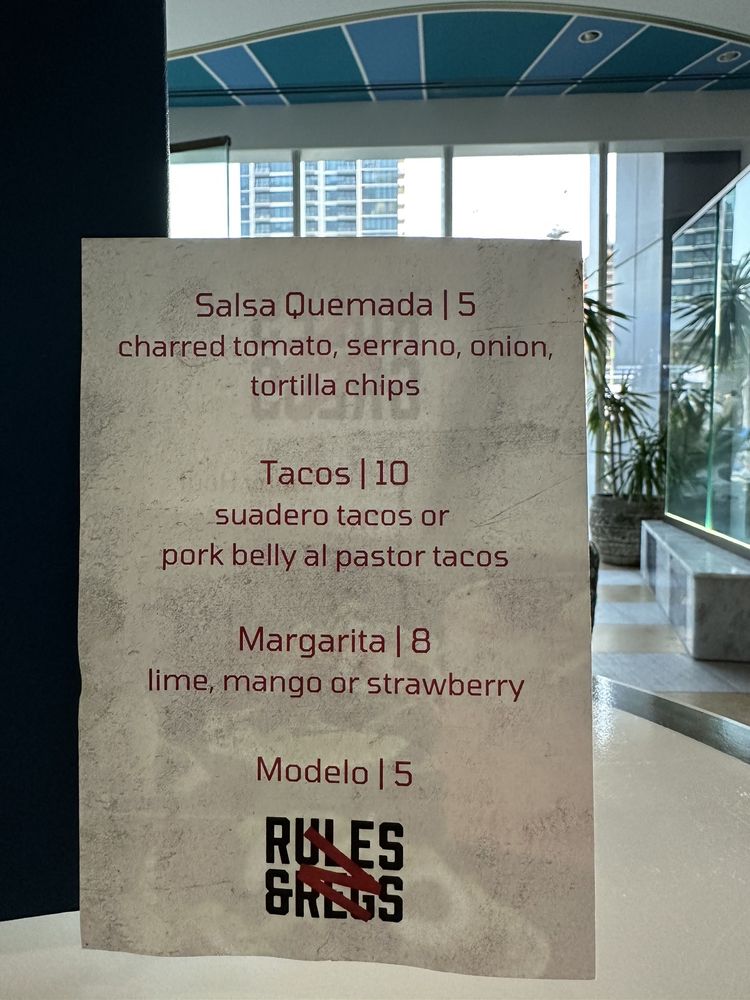 Rules & Regs, a New American-Mexican restaurant located in Austin, TX, offers a blend of casual, trendy, intimate, and upscale dining experiences. With amenities like outdoor seating, full bar, and happy hour specials, this restaurant caters to a diverse range of customers. The menu features fresh and crispy afternoon dishes like Baby Lettuces with Pumpkin Seed Hummus and "Dirty" Fries. The creative cocktail menu and delicious desserts add to the overall experience. Customer reviews highlight the friendly staff, classy atmosphere, and unique drinks. The outdoor seating area offers a stunning view of the city, making it a perfect spot to enjoy a meal or drinks. Don't miss out on the festive decorations and themed events, creating a lively atmosphere for guests. Whether you're looking for a relaxing evening or a fun night out, Rules & Regs has something for everyone.